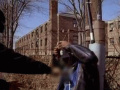 Watchin' Dre serve skunk through a hole in the gate.